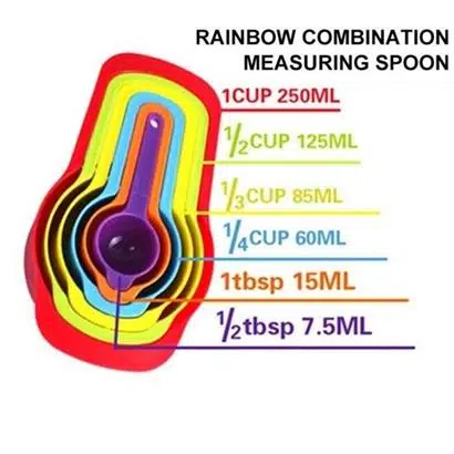 250 ml,125 ml, 85 ml, 60 ml, 15 ml, 7,5 ml 5'li Ölçeklerin mutfağınızda olması büyük kolaylık sağlayacaktır